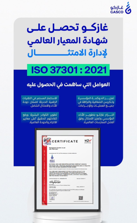 حصول #غازكو على شهادة الامتثال العالمية
