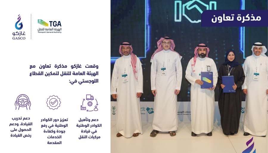 في إطار دعم توطين قطاع النقل وقعت غازكو مذكرة تعاون مع الهيئة العامة للنقل