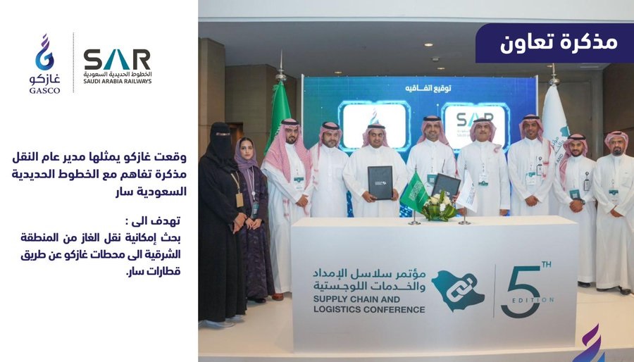 وقعت غازكو يمثلها مدير عام النقل مذكرة تفاهم مع الخطوط الحديدية السعودية سار. مؤتمر_سلاسل_الإمداد_والخدمات_اللوجستية